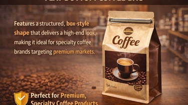 Features a structured, box-style shape that delivers a high-end look, making it ideal for specialty coffee brands targeting premium markets.