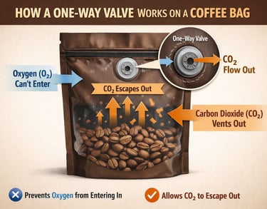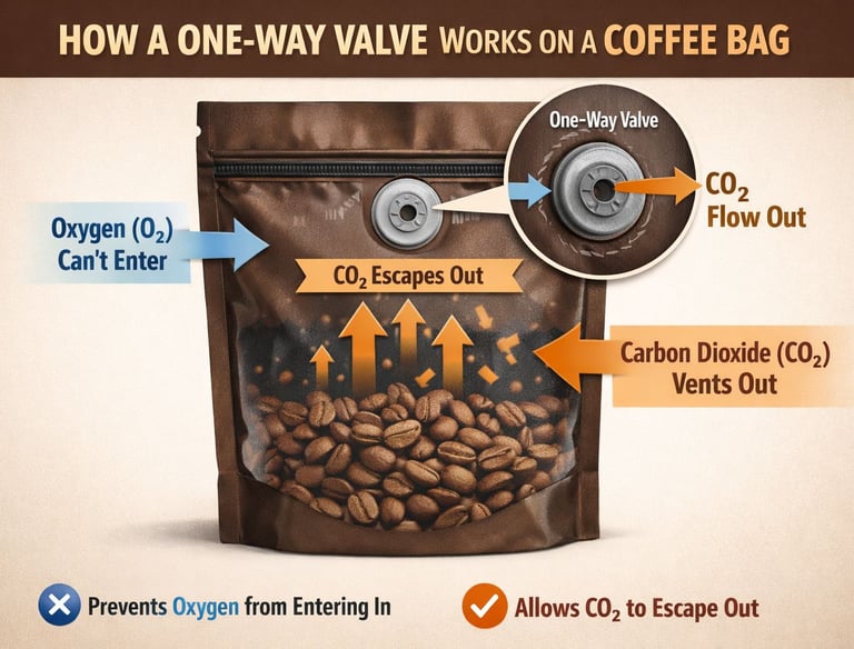Allows CO₂ release while preventing oxygen entry, ideal for freshly roasted coffee.
